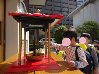 ほとけさまに甘茶をかけてお祝いしました。