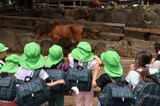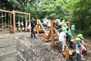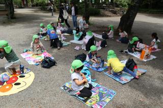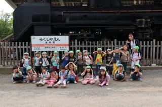 園外保育(年中) 豆汽車に乗ったよ! 近くで動物を見ました!! アスレチックでも遊んできたよ✿ お友だちと楽しそうに食べていました☆彡 楽寿園まで行きはバス、帰りは歩いて幼稚園に帰りました! たくさん遊べたね☺