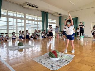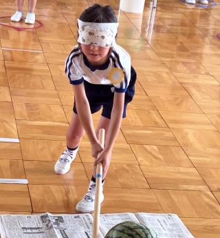 - スイカ割りをしました!