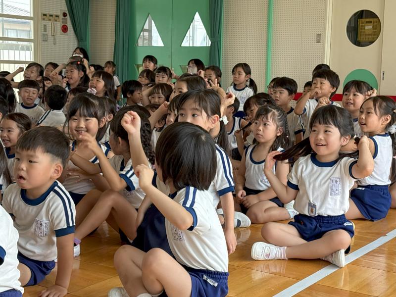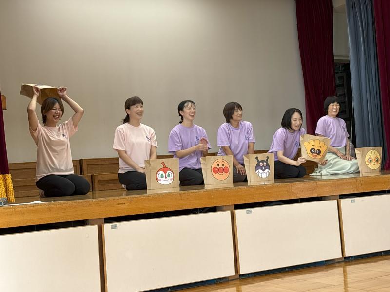 後半は先生当てゲーム!今回は級外の先生たちです♪紙袋を被ってアンパンマンのなかまたちに変身した先生たち。好きな給食や色、くだものなどの質問に答えてもらい、みんなで予想しました。ほとんどの子が正解で、先生たちのことよく見てくれているんだな~と嬉しく感じました(*^^*)先生がお顔を出してくれて正解だとわかったときに全力で喜んでいる子どもたちがとても可愛らしかったです。