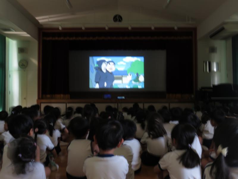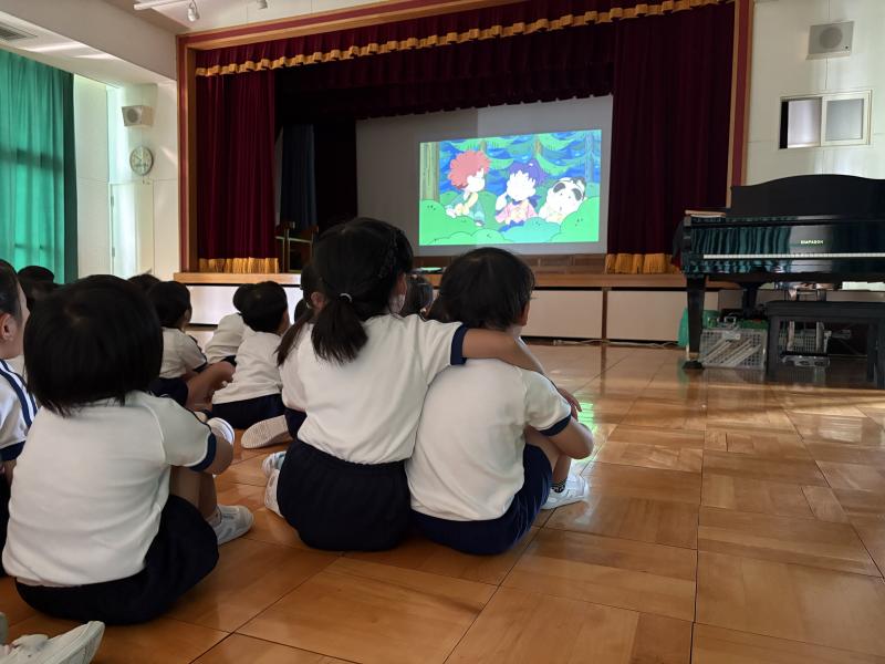 夏季保育3日目は、DVD鑑賞をしました。お遊戯室を映画館のように暗くし、「忍たま乱太郎」を鑑賞しました。涼しくしずかなお部屋でゆっくり過ごすことができました(*^^*)
