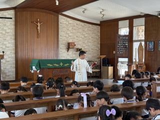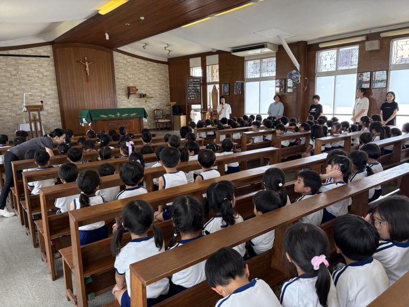 今日は聖堂にて2学期の始業式を行いました。みんなでお祈りをしたり神父様や園長先生のお話をお聴きし、楽しみいっぱいの2学期がスタートしました!