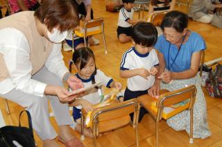 折り紙の活動では、おじいちゃんおばあちゃんに教えてもらいながら一緒に楽しんで折ることができました。