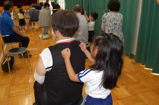 そのあとは歌に合わせて肩たたきをプレゼントし、最後は歌の発表をしました。
