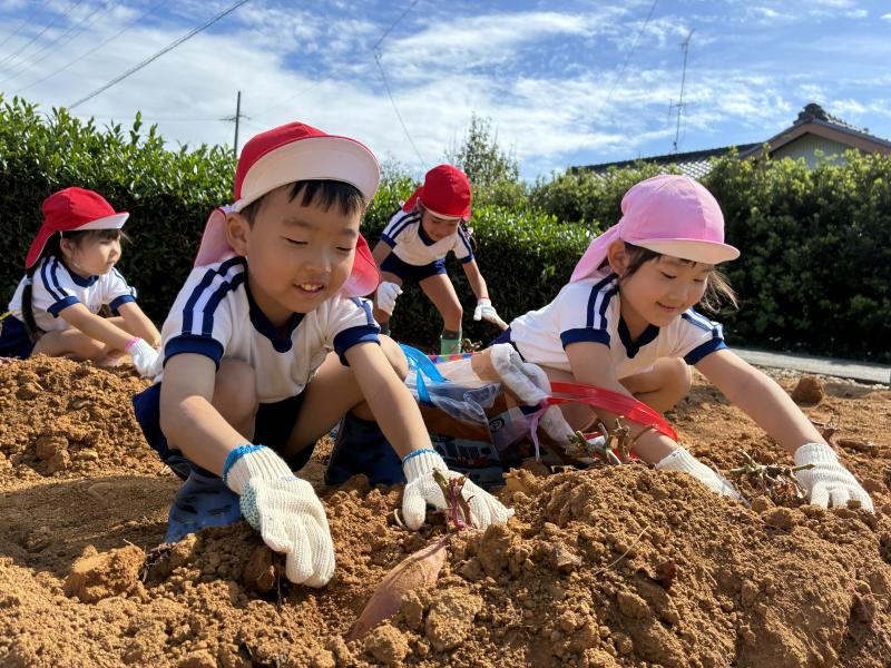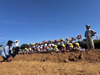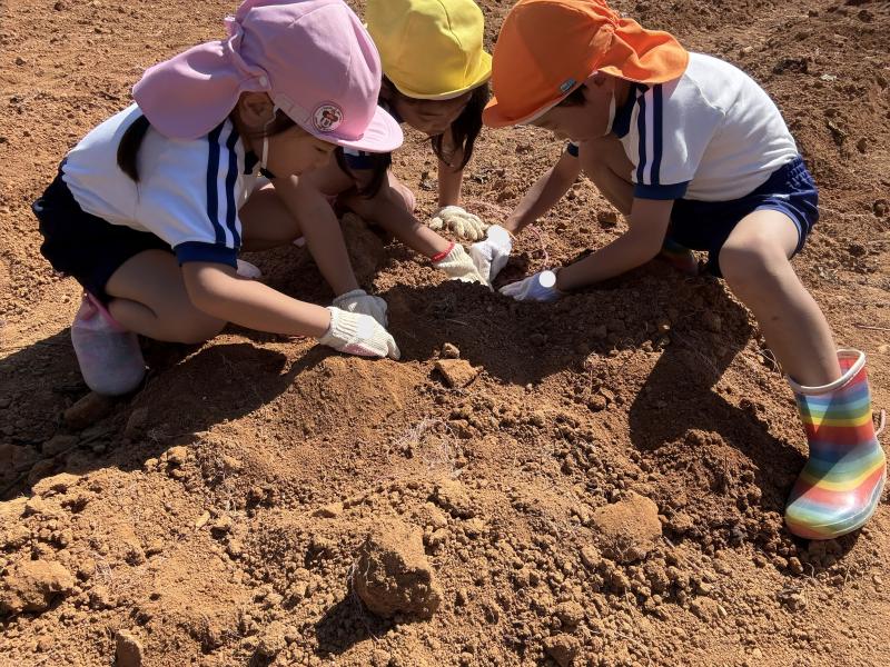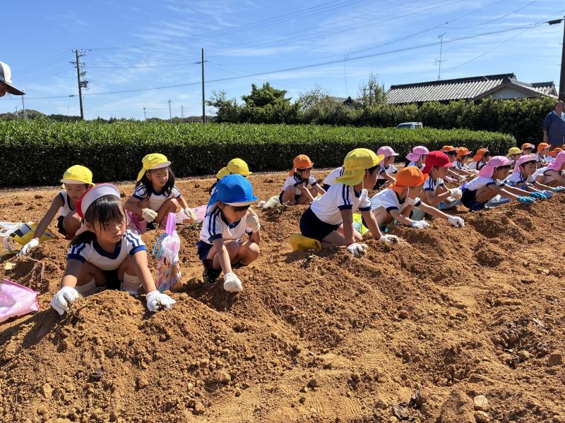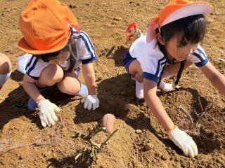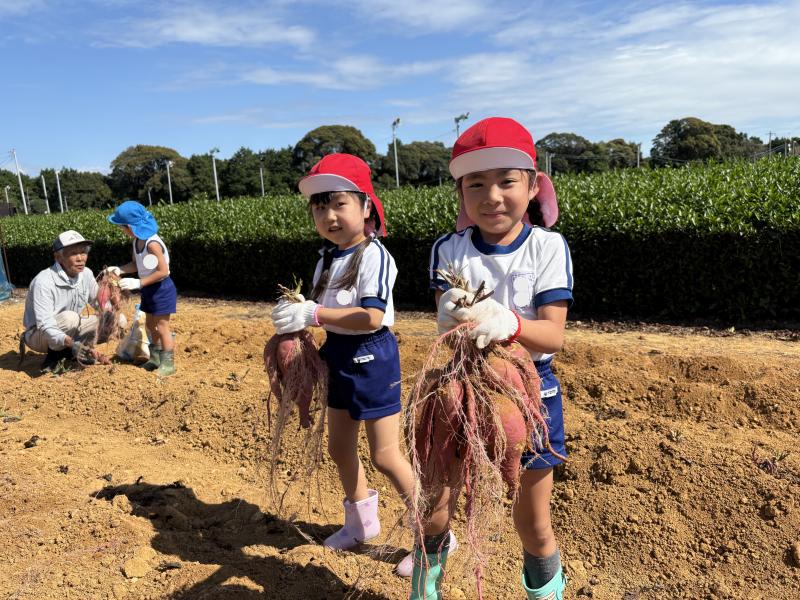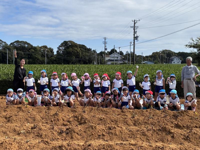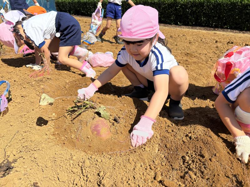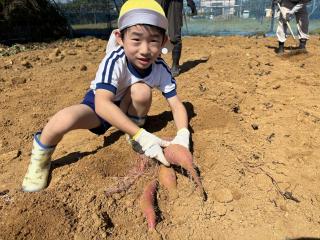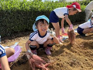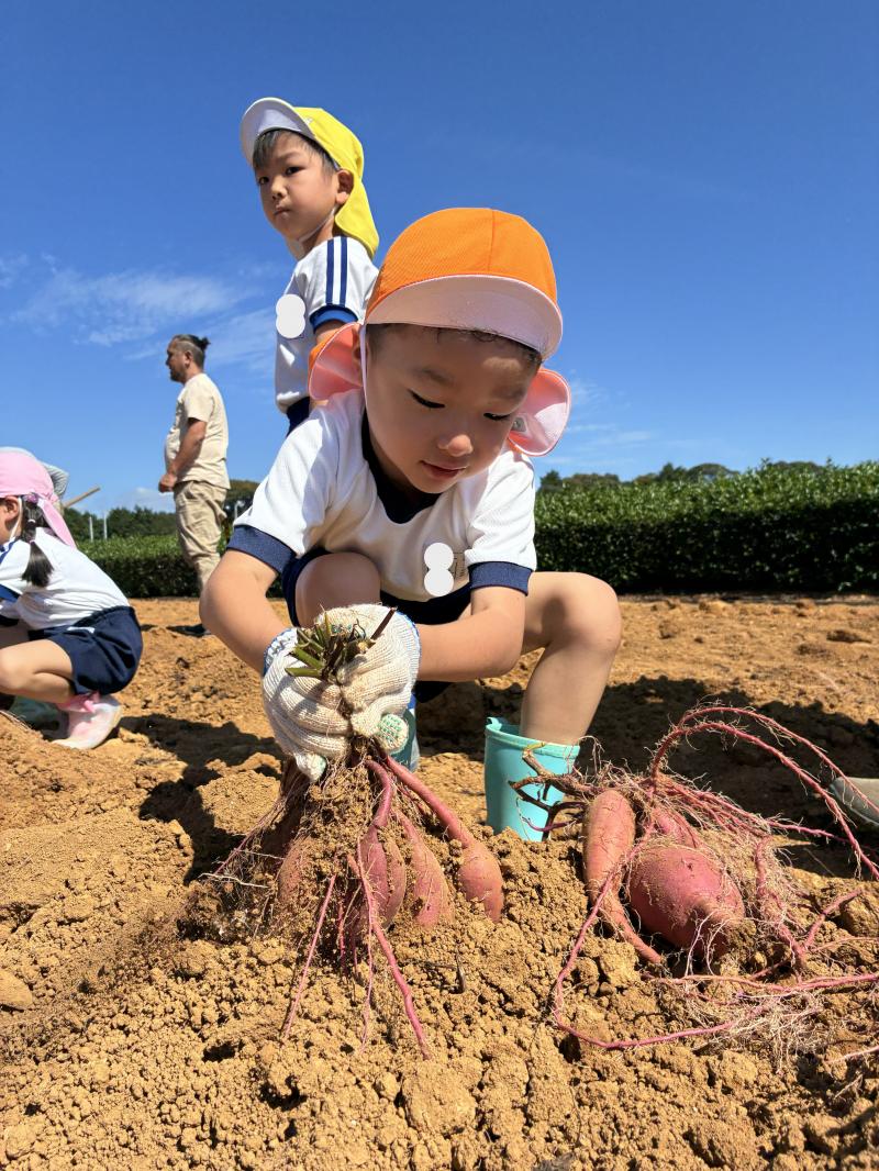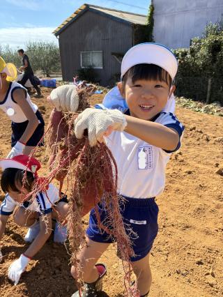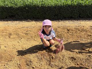 Aさんは去年も芋ほりを経験していたので、ほり方を覚えている子が多かったです。傷がつかないようにたくさん掘ることができました。大きいお芋がたくさんでバックが重たくなり、さすがのAさんでも運ぶのに苦労していましたが、達成感で満足した笑顔を見せてくれました^^