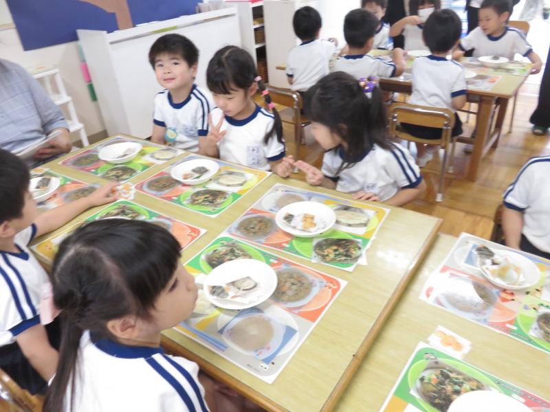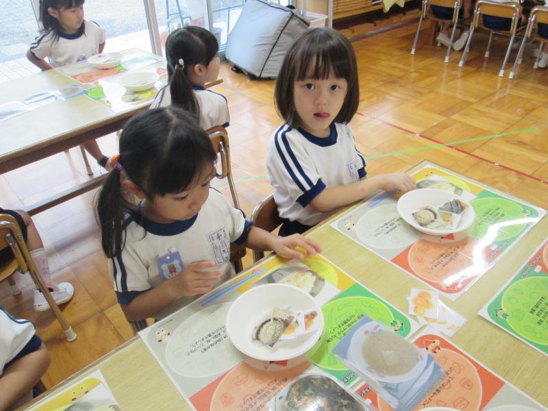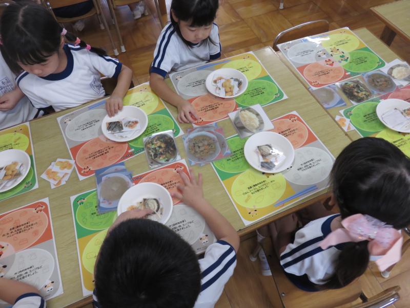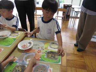 今日の給食のメニューを使って活動しました。