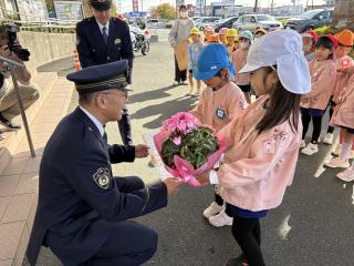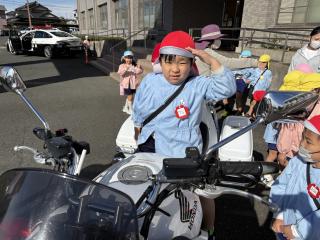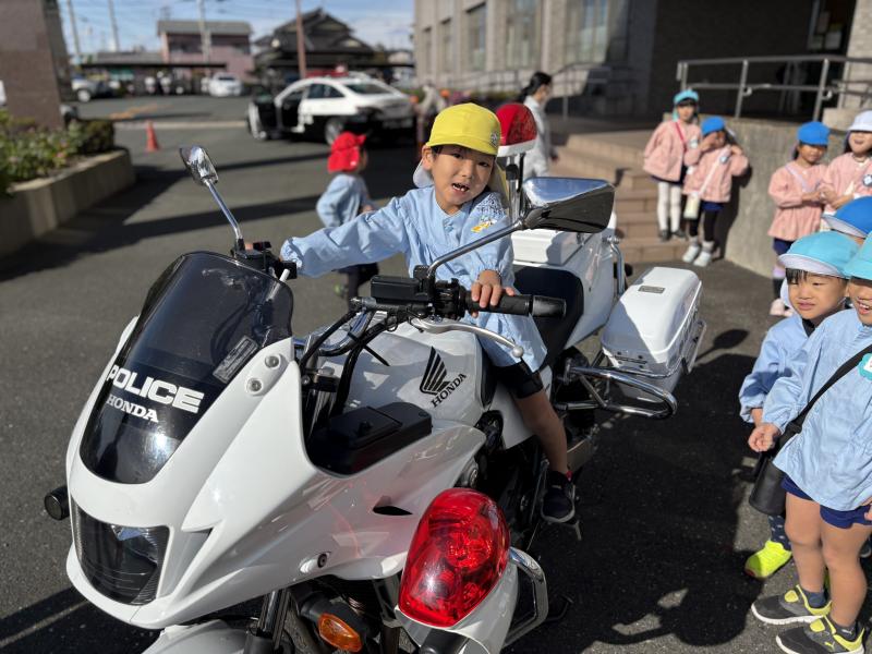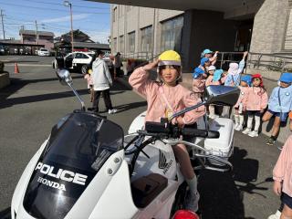 ホーム Aさん警察署訪問 Aさん警察署訪問 2025年11月18日 11月23日は勤労感謝の日です。Aさんが日頃の感謝を伝えに磐田警察署に行ってきました。 警察署で働く方々が私達の安全を守ってくださっていることに感謝するとともに、私達も交通ルールを守ることの大切さを感じました。 警察署ではパトカーと白バイに乗せていただき、パトカーの中に設置してある機材に興味津々、また白バイに座ってハンドルを持った瞬間の嬉しそうな顔‼ 子ども達の心に残る体験をさせていただきました。