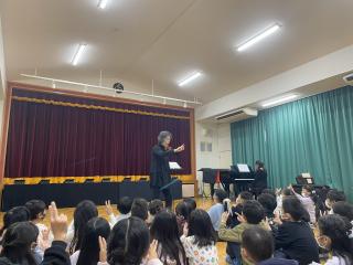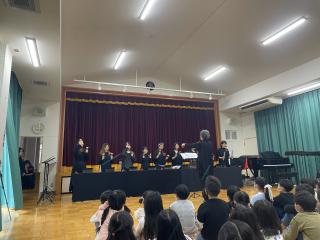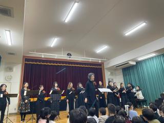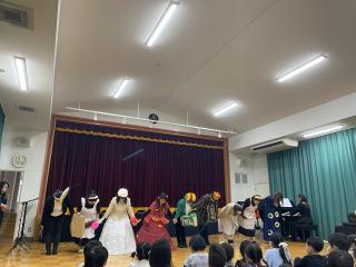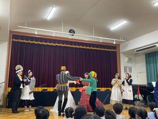 次にミュージッククラブさんの公演を見ました。「ハンドベル・トーンチャイムを使っての演奏」、「オペレッタ」、「合唱」を楽しみました。子ども達が小学校で歌っている曲もあり、口ずさむ姿や手拍子をする姿がありました。