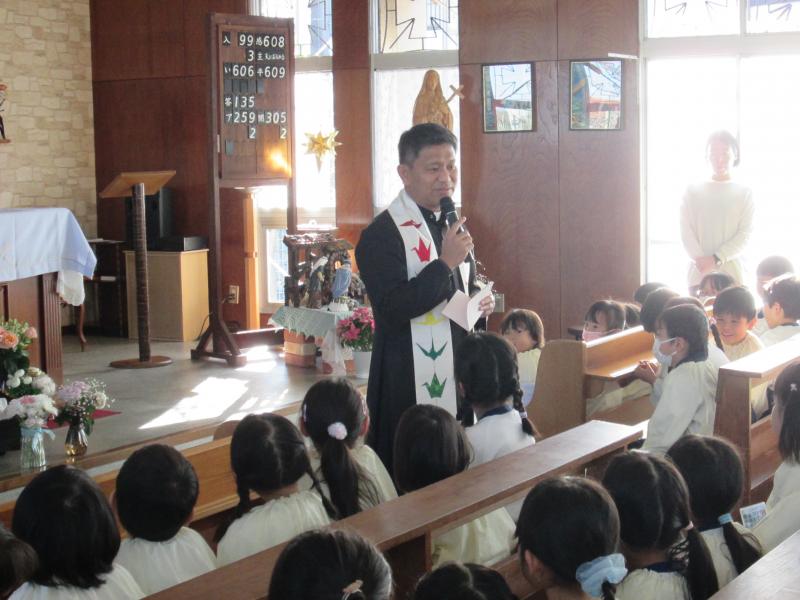 ホーム 更新履歴 始業式がありました 始業式がありました 2026年01月09日 今日は始業式がありました。みんなで御聖堂に集まり、神父様と園長先生のお話を聞きました。「ありがとうとごめんなさいを大切に生活しましょう。みんなが笑っている時、頑張っている時、ちょっと疲れた時も神様はそばにいます。みんなは神様の光です。」と神父様がお話してくださいました。一人ひとりが輝き、お互いを思いやる気持ちを大切にしながら3学期も過ごしていきたいと思います。3学期から新しいお友だちも増えました。寒さに負けず元気いっぱい過ごしていきたいですね。