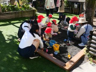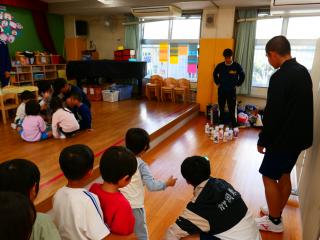 0歳児から5歳児のそれぞれのクラスに分かれて、園児たちと一緒に遊んでくれました