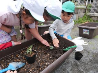 まつ組(年長)さんが野菜の苗を植えました。