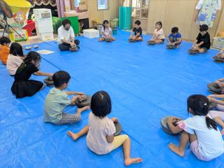年長児が自分達で作った抹茶碗を使用し、お茶会を行いました。「美味しい!」「ちょっと苦い…」子ども達の素直な感想が聞かれましたよ。年中児も抹茶を体験し、年長児がお茶出しをしてくれました。