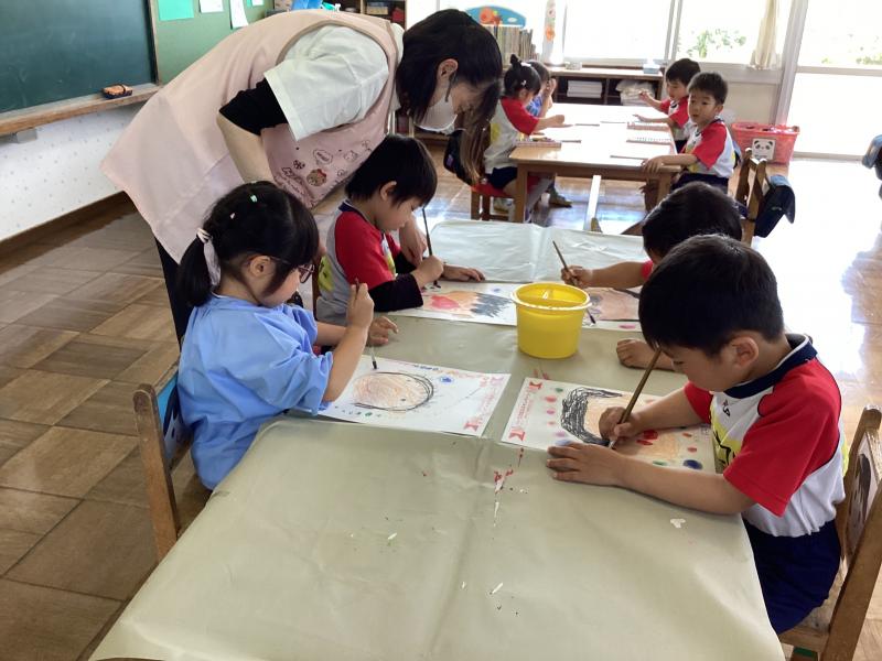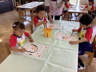 年中さんは筆を使ってにじみを楽しみました☆