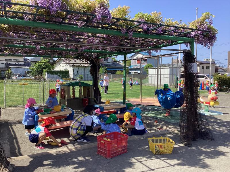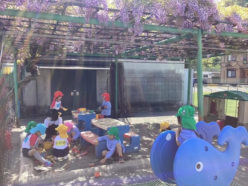 藤のお花のいい香りの元、お砂場あそびも大人気です!