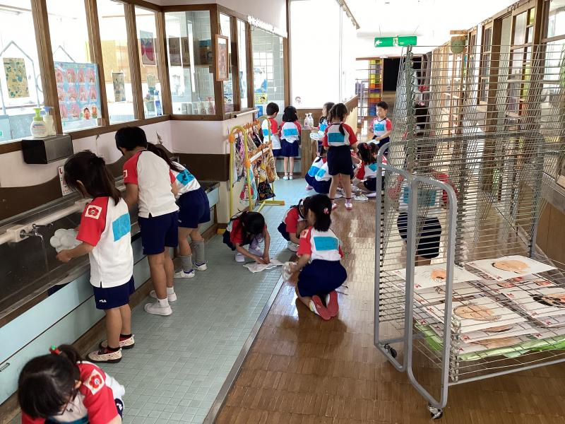 年長さんはパレットや筆を自分で洗っています!