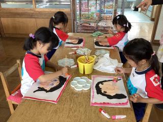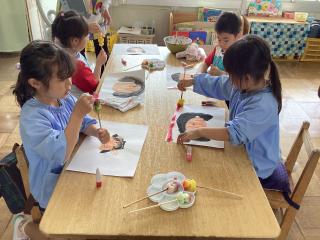 年長さん☆スポンジ筆で枠を描いたよ!