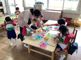 年中さん絵の具遊び☆年少さん七夕飾り制作