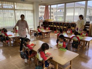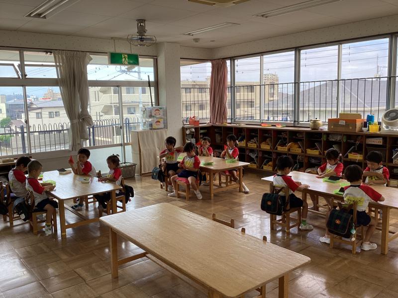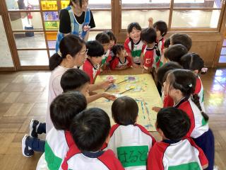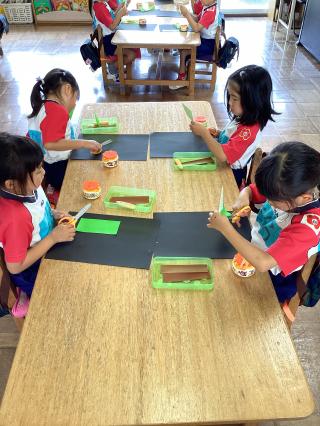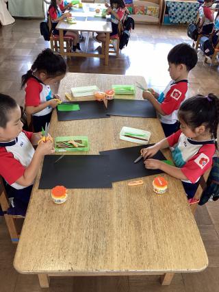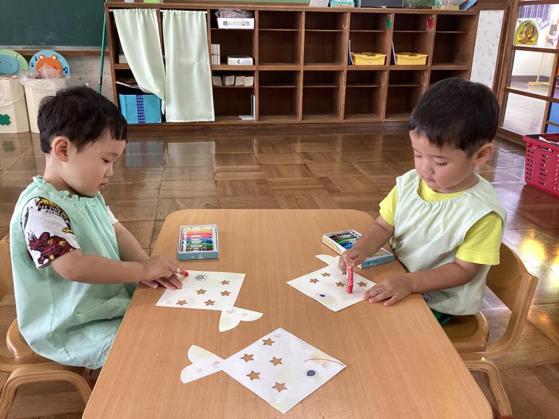 ひよこさんも自分のクレヨンで魚にお顔を描いています☆