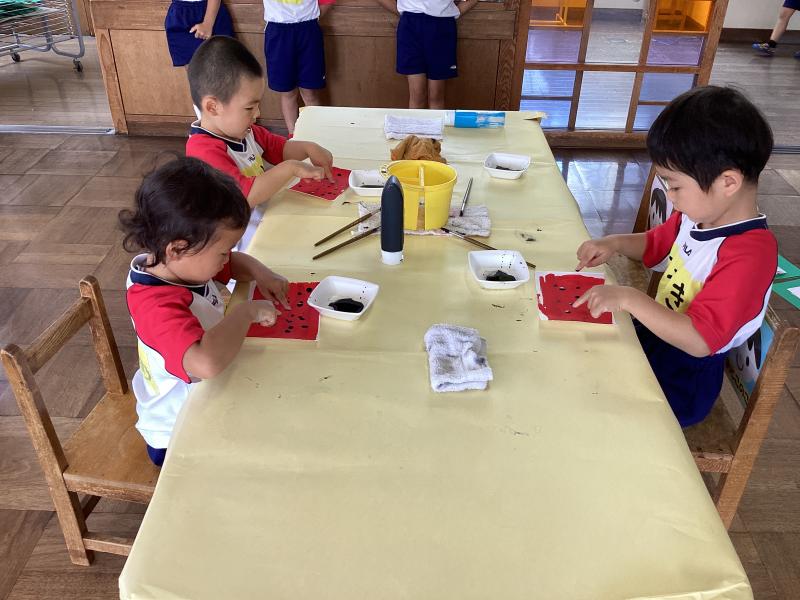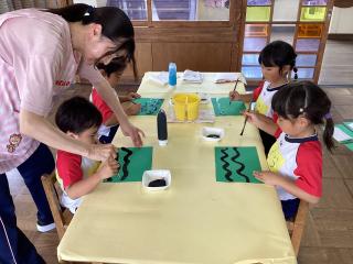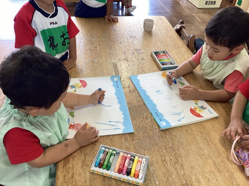 クレヨンでお絵描きもしたよ!雨ザーザー♪