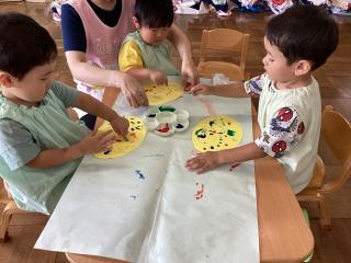 ひよこさんもペタペタ~と絵の具遊びをしました♪