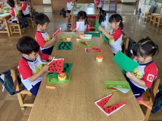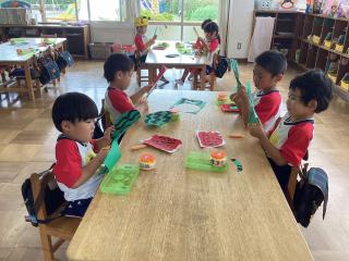 年中さんでは先日の絵の具のナミナミをはさみで切っていました!