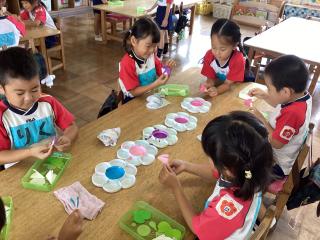 • 制作帳「あさがお」です。何色の朝顔が咲いたか思い出しながら障子紙を染めています!
