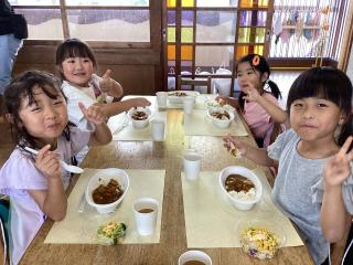 • 自分たちが切った人参やジャガイモが入った特別なカレー♡とっても美味しかったね(^_-)-☆
