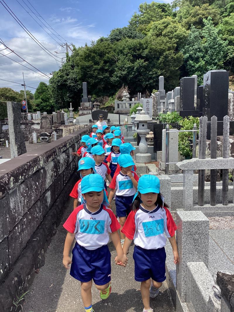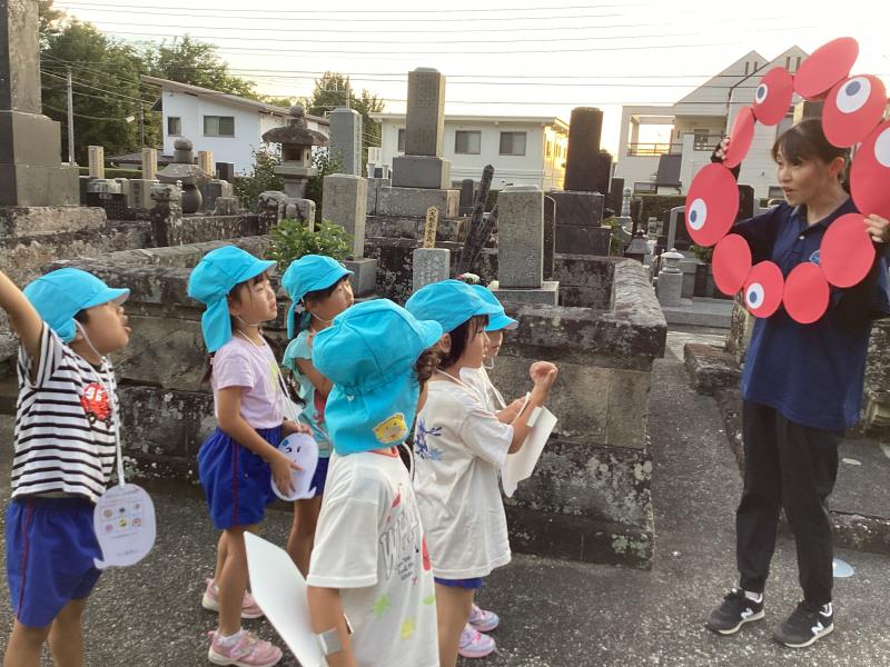 • お散歩に行ったよ♪おたのしみ保育で行う‘‘きもだめし‘‘のコースを覚えながら歩きます♬