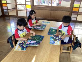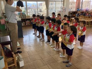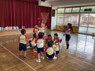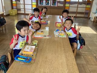 英語教室では、一学期で沢山の英語を話せるようになりました♪絵を見て単語を言えるようになったり、英語の歌を元気に歌えるようになったり、楽しんで参加する姿が見られます! -