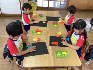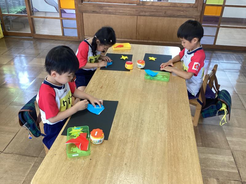 制作帳「ロケット」では、ロケットと星を折り紙で折りました!!少し難しい所もありましたが、しっかり説明を聞いて折り進められました(^_-)-☆ -