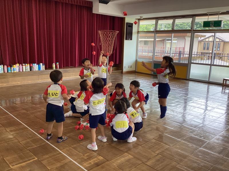 みんな大好きな玉入れもしました!両手いっぱいに玉を集めて投げたり、一つ一つ集中して投げたり、個性がでていて面白いです♡ -