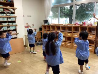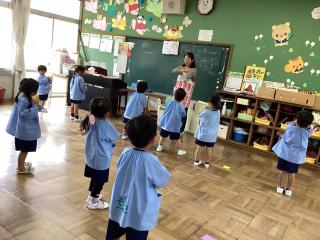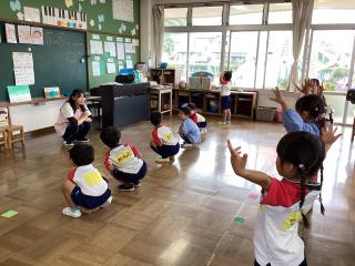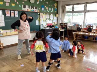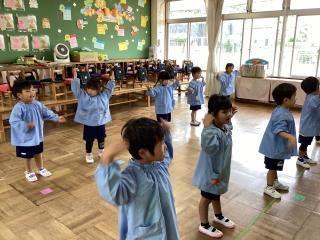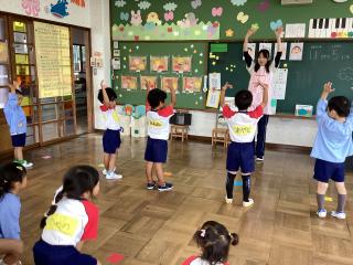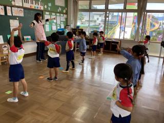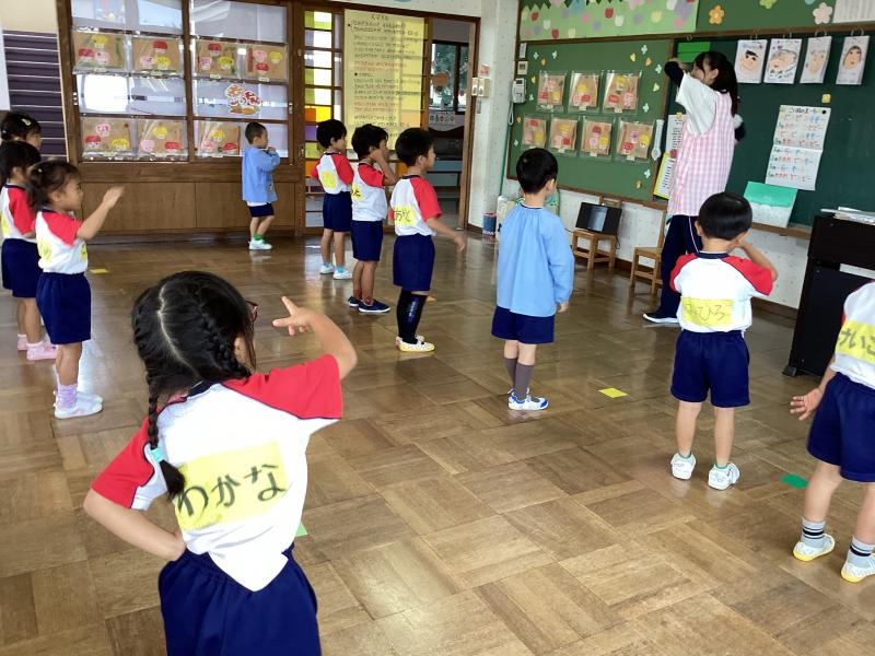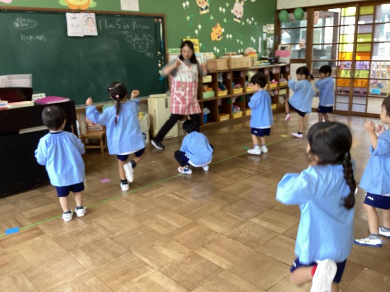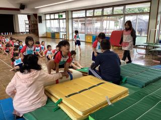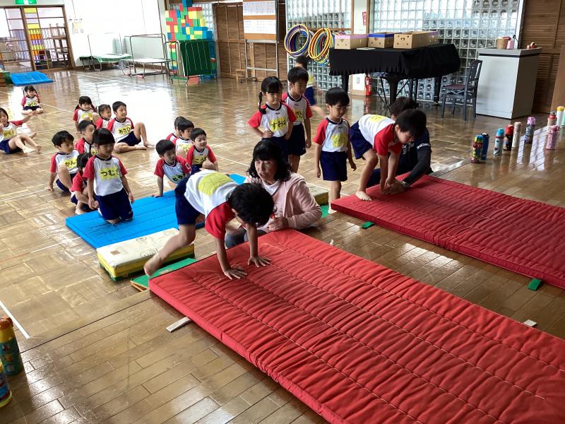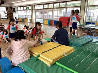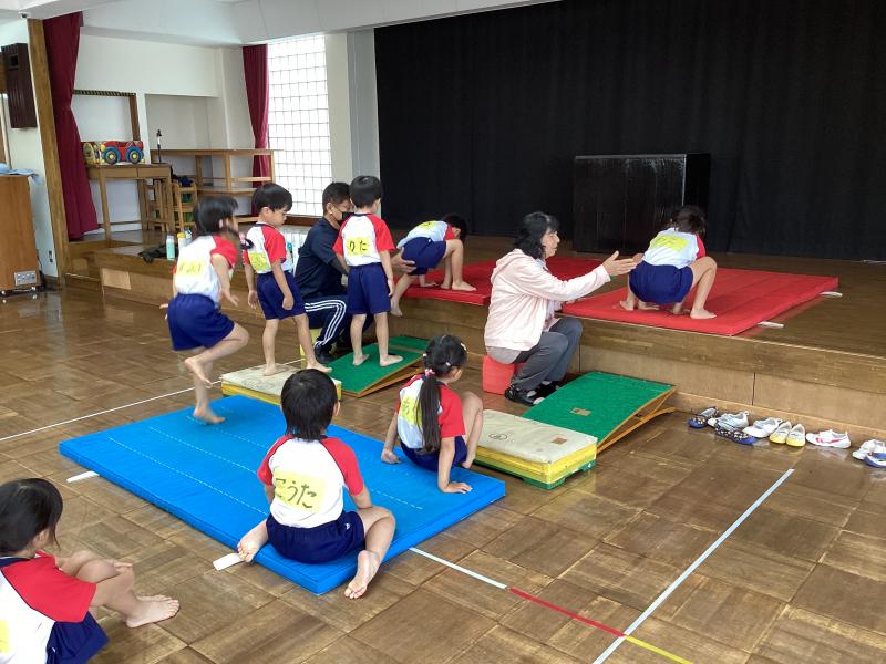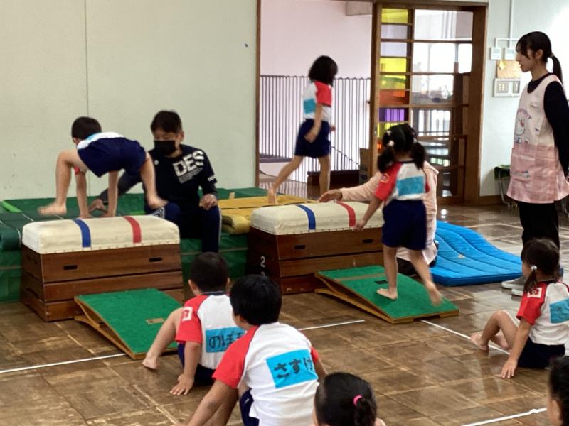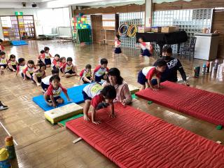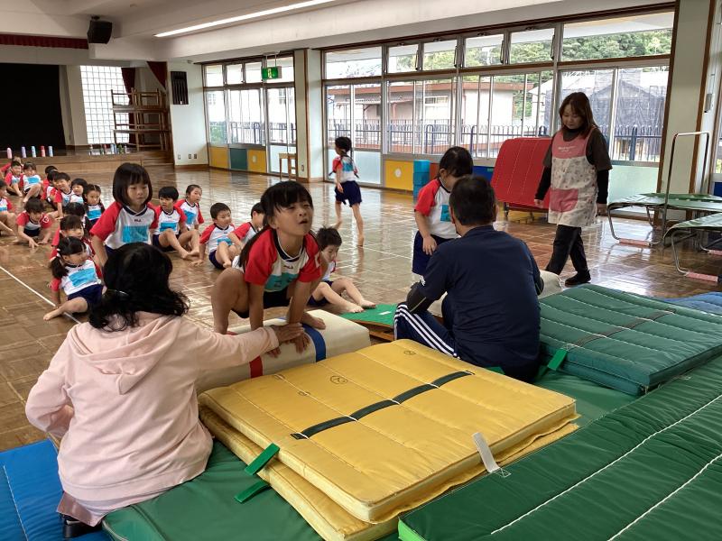 • 年長さんも跳び箱運動。タケちゃんマン先生のお話をしっかり聞いて。