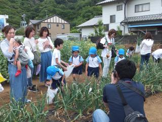 5月の参観ではパパやママと玉ねぎの収穫をしました。