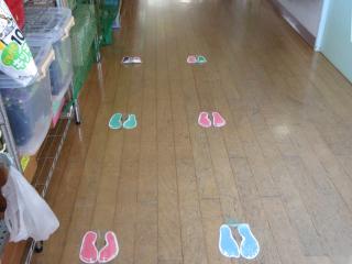 お部屋に入るとき、トイレ・手を洗うときは足型に並びます(#^.^#)