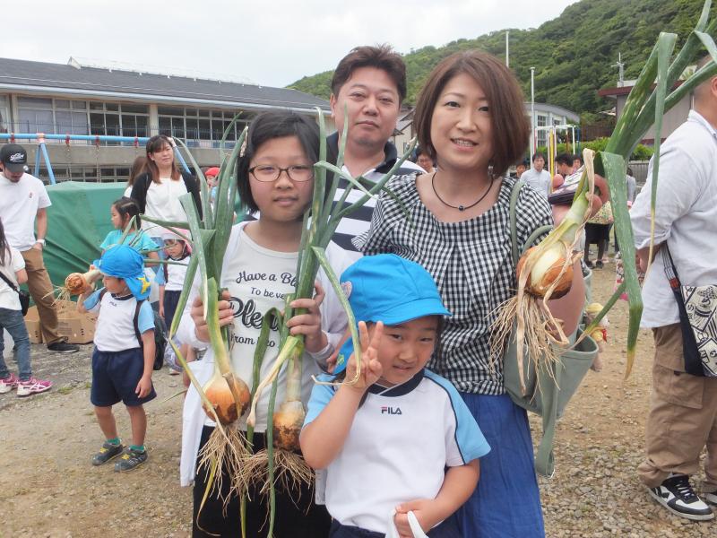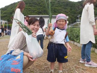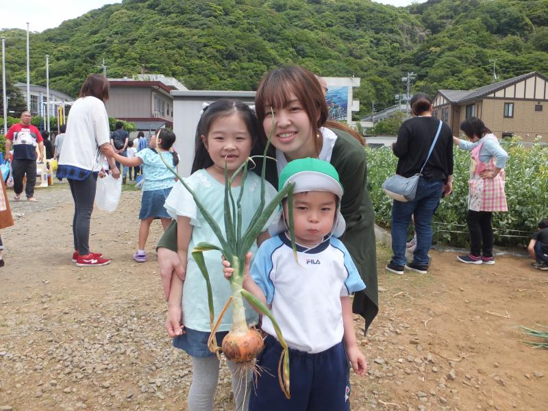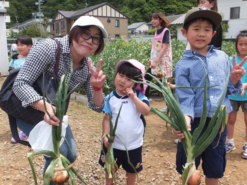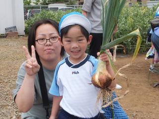 5月の参観ではパパやママと玉ねぎの収穫をしました。