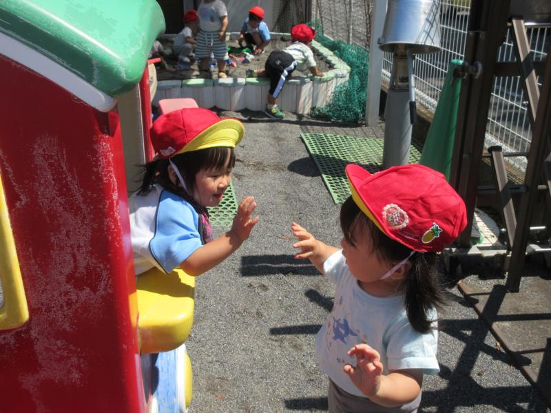 園庭で楽しく遊んだひまわりさんです。‼