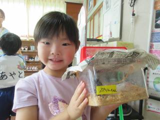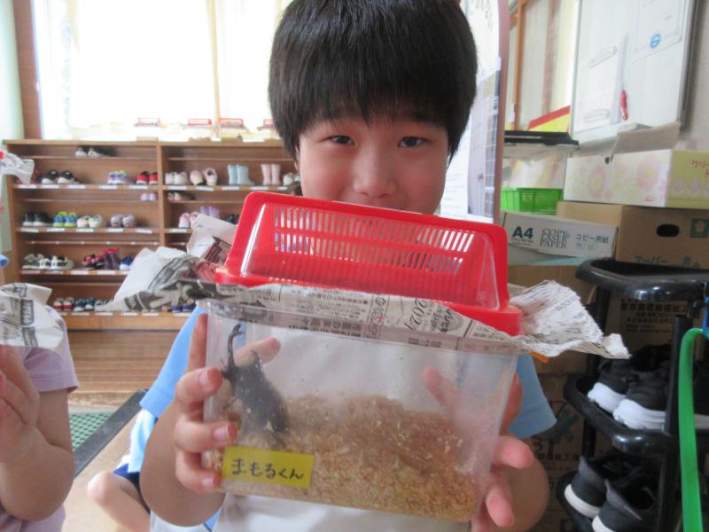 「カブトムシにエサをあげなきゃ!」とカブトムシのお世話が欠かさないうめさん^^名前は自分たちで決めました!