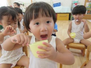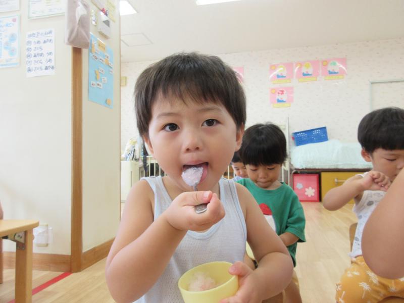 ぶどう、レモン、いちごの中から好きな味を選んで食べました!
