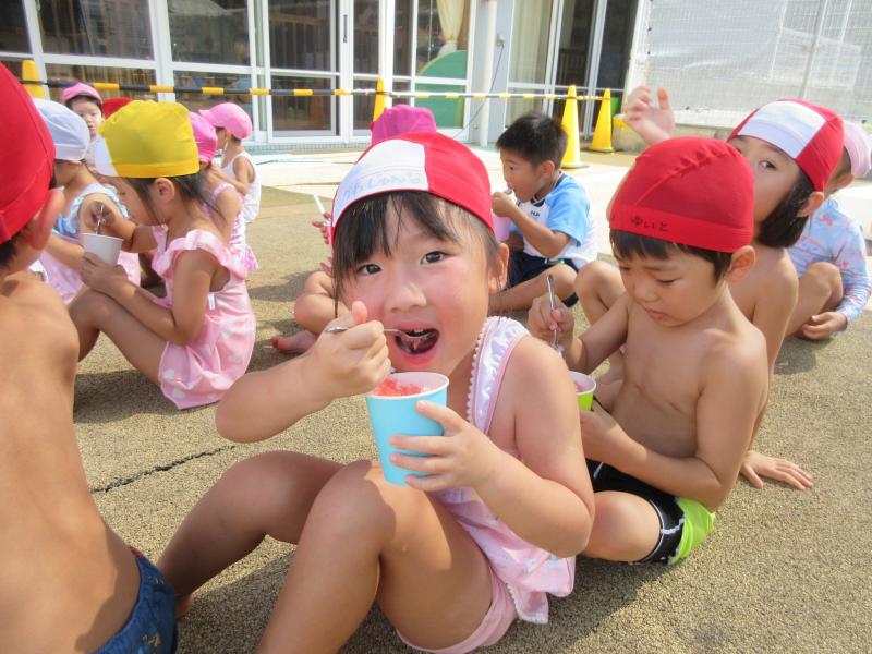先日8月のお誕生日会があり、その後にみんなでかき氷を食べました!冷たいけどおいしいかき氷にみんな夢中で食べていました♡