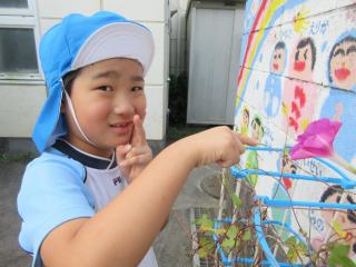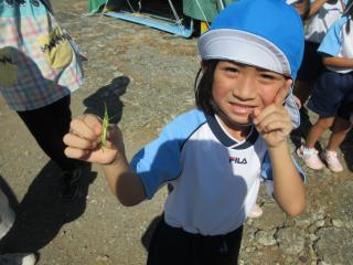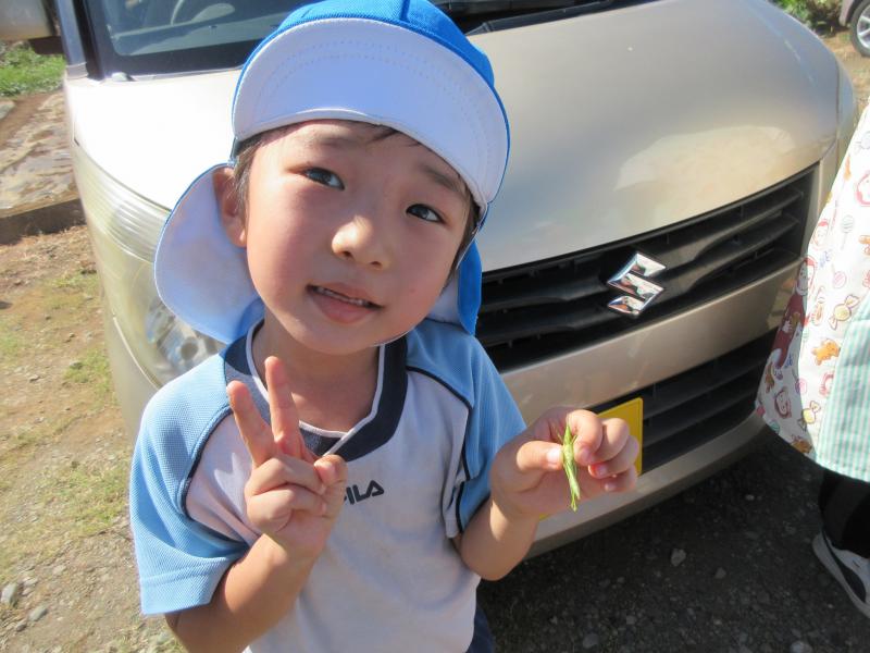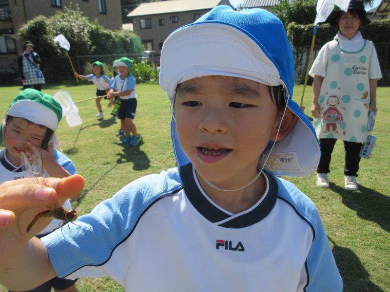大根の種まきの後はあやめさんと虫探しをしました!バッタやトンボをたくさん見つけて嬉しそうなうめさんです^^
