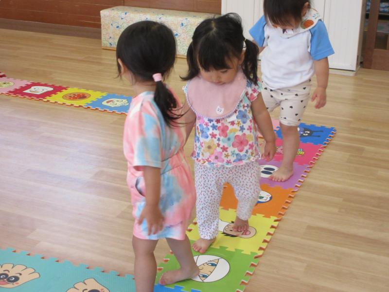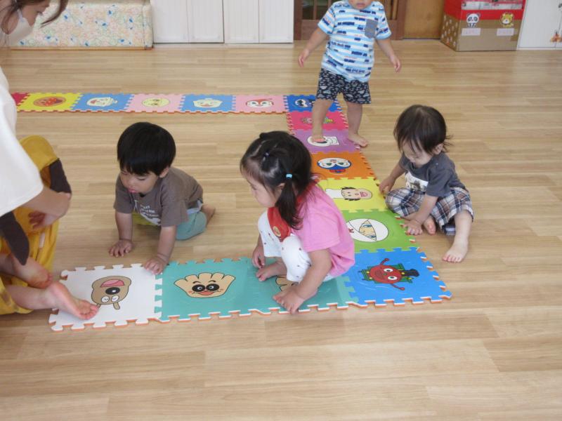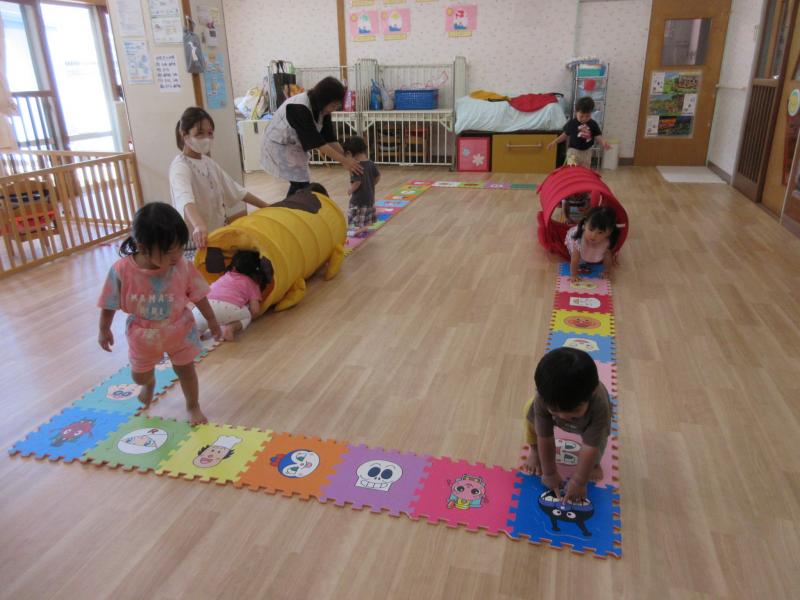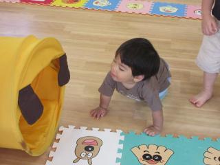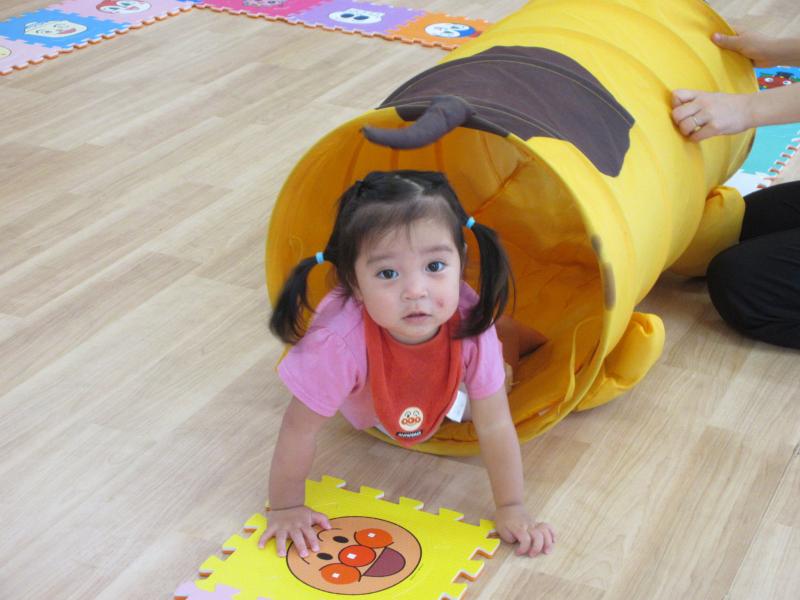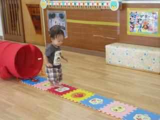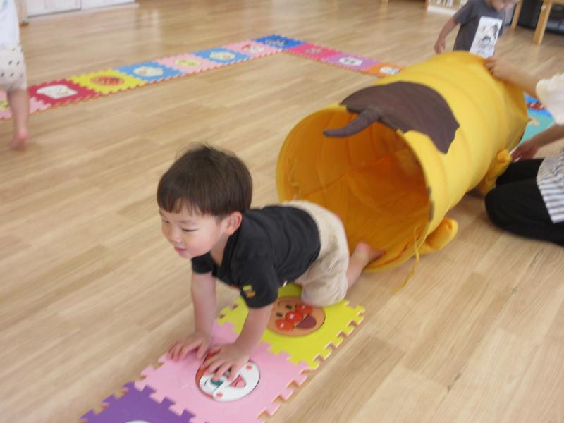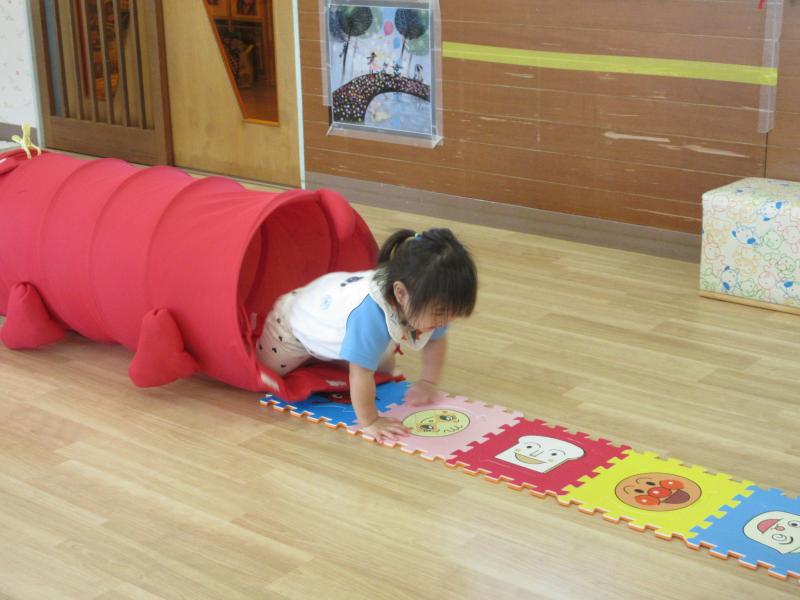 トンネルとアンパンマンマットを組み合わせて遊んだよ♬