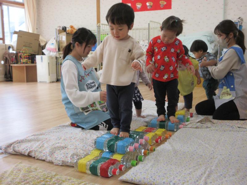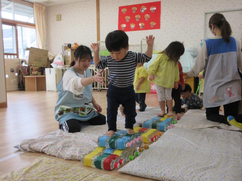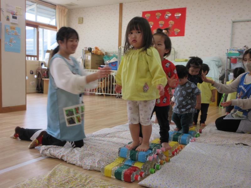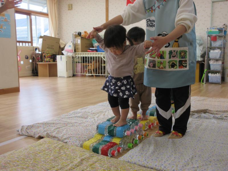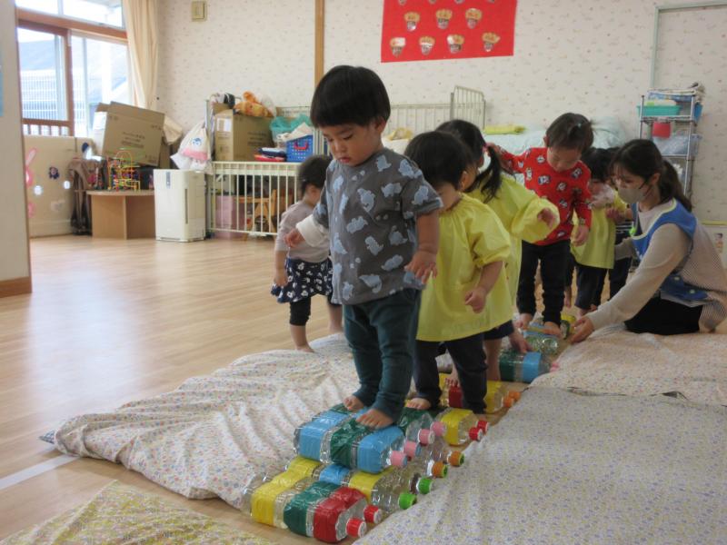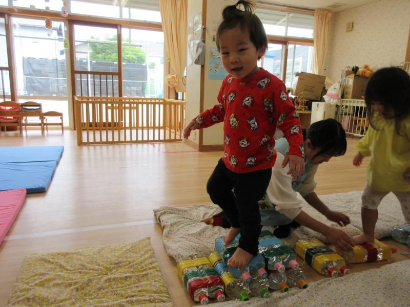 ひまわりさん、ペットボトル平均台で遊んだよ♬