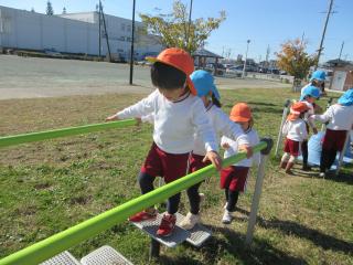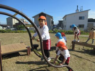 公園内では、「ペアさ~ん!」「こっちで遊ぼう!」とペアさんを意識しながら遊んでいて…。難しい遊具もふじ組さんがもも組さんの手を繋いで支えてくれたり、ふじ組さんの姿を見てもも組さんもやりたい!と挑戦してみたり、鬼ごっこでは異年齢で一緒に走り回ったりと終始笑顔が絶えない時間でした(^▽^)/