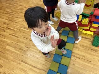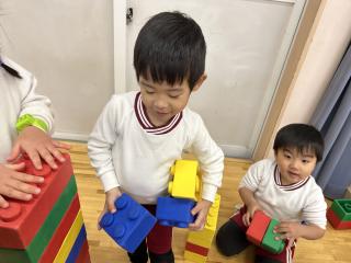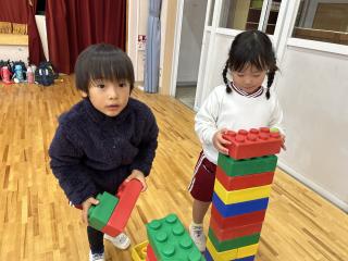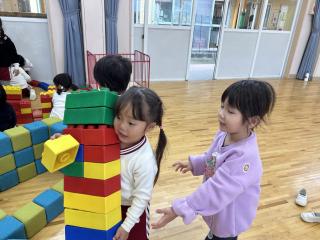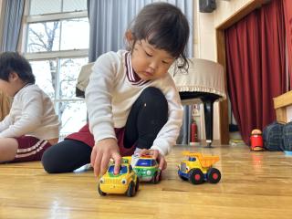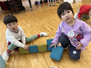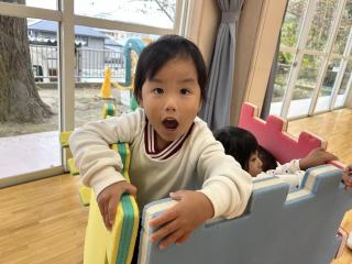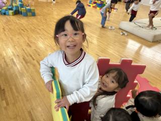 お弁当の後は、遊戯室でのんびり遊びました。友だちと同じ遊びを楽しむ姿に成長を感じます♡