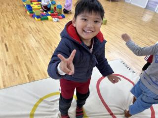 でも!幼稚園でも精一杯楽しむことが出来るよう、今日は遊戯室へピクニックに行きました!