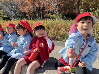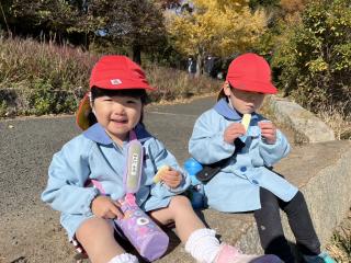 もも組さんにとって今までの園外で一番長距離の散歩で、だんだん足取りが重くなる子も…。それでも自然を楽しみながら自分の力で歩き切ることができました!