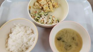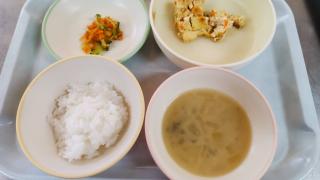 ホーム 1月10日の給食 1月10日の給食 2025年01月10日 ・ゆかりごはん ・擬製豆腐 ・春雨サラダ ・みそ汁(玉ねぎ・わかめ) こちらは離乳食完了期のメニューです。 ・ごはん ・擬製豆腐 ・春雨サラダ 。みそ汁(玉ねぎ・わかめ) こちらは離乳食後期のメニューです。 ・軟飯 ・擬製豆腐 ・野菜煮 ・みそ汁(玉ねぎ・わかめ) 15時のおやつは《ノアール・ぽたぽた焼き》でした♪