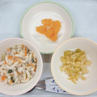 ホーム 1月22日の給食 1月22日の給食 2025年01月22日 ・塩むすび ・しょうゆラーメン ・きゅうりのナムル ・杏仁豆腐 こちらは離乳食後期のメニューです。 ・やわらか煮込みうどん ・きゃべつのおひたし ・みかん 15時のおやつは《おさつスティック》でした♪