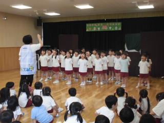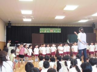 ホーム 1コマダイアリー 5月の誕生会 5月の誕生会 2025年05月22日 5月生まれのお友だちは、幼稚園のお友だちの前で大きな声で自分の名前が言えました。 年中さんは、「さんぽ」を歌ってくれました。 年長さんは、大好きな歌「ヤンチャリカ」を素敵な声で歌えました。 「三匹のやぎのがらがらどん」をみたよ。