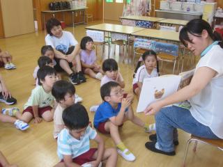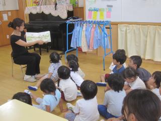 ホーム 1コマダイアリー 6月18日(水) 絵本の会の読み聞かせがありました。 6月18日(水) 絵本の会の読み聞かせがありました。 2025年06月18日 ふじ2組は「せかいいちおおきなうち」 「にげて さがして」 ふじ1組は「じゃがいも」 「やきそば ばんばん」 さくら組は「いつつご うさぎと ゆきのもり」 「ぴっつんつん」 たんぽぽ組は「ぼくらはいけのかえる」 「こどもかいぎ」 ひまわり組は「どんぐりむらのぱんやさん」 長いお話でしたが、可愛い絵とパンにひかれて最後まで観ていました。